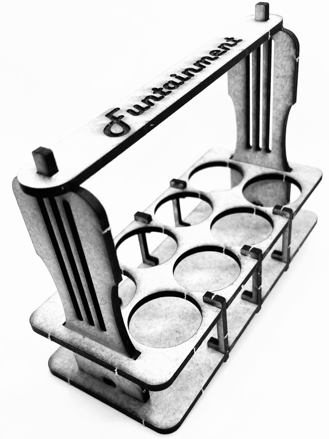 Das Stackable Dropperbottle Paintrack beinhaltet einen Rahmen mit 12 gelaserten Holzteilen. Du wirst für den Zusammenbau Holzkleber benötigen. |